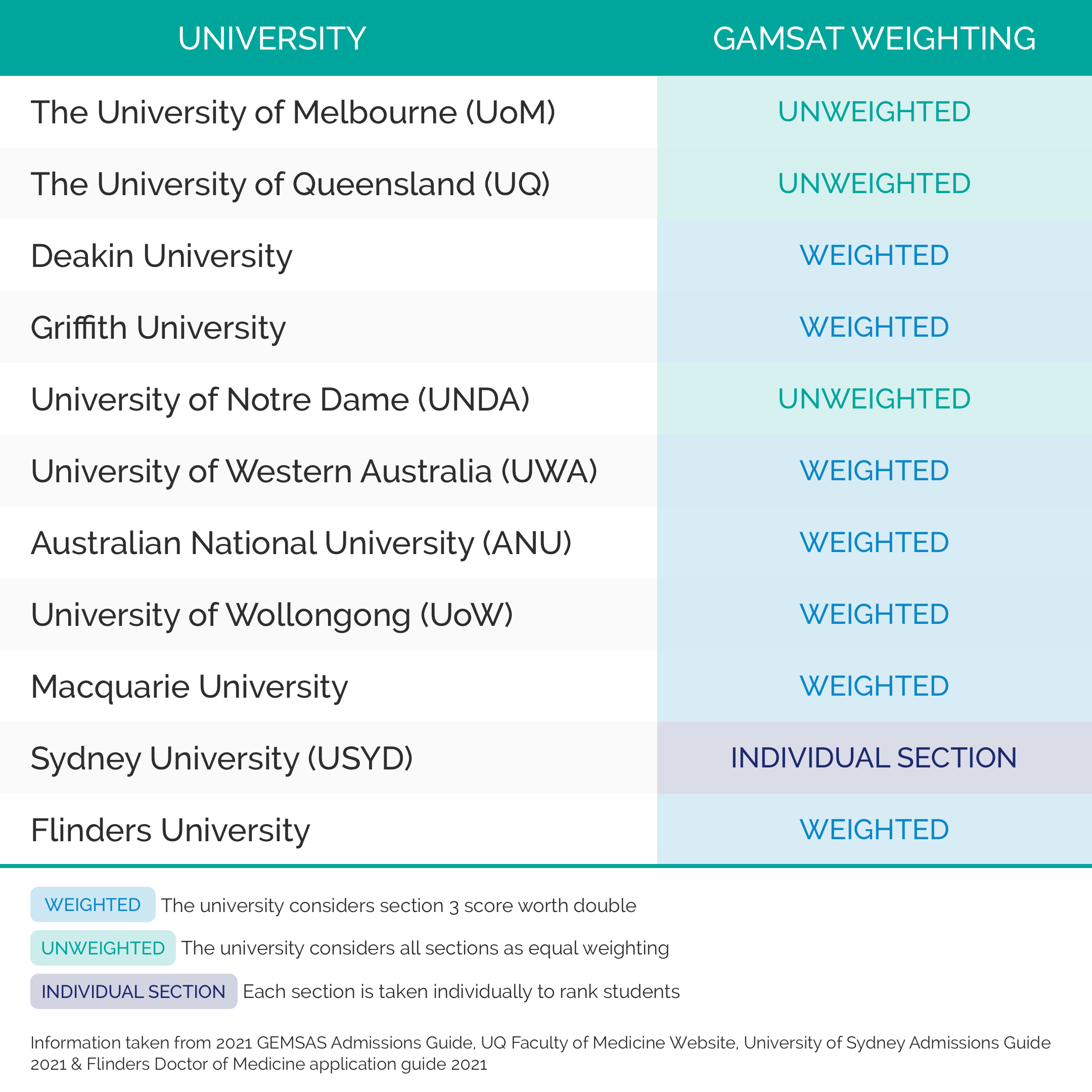 Did you know that some Australian medical schools weigh GAMSAT section 3 twice, while others do not? The score ACER provides does indeed weigh it twice. However when applying for universities that don’t, your score (and competitiveness) may alter according to the med school's requirements!